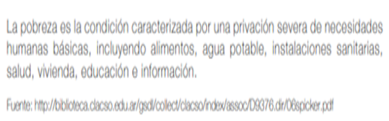 - Escriba en su cuaderno o carpeta tres definiciones de pobreza según el texto leído.