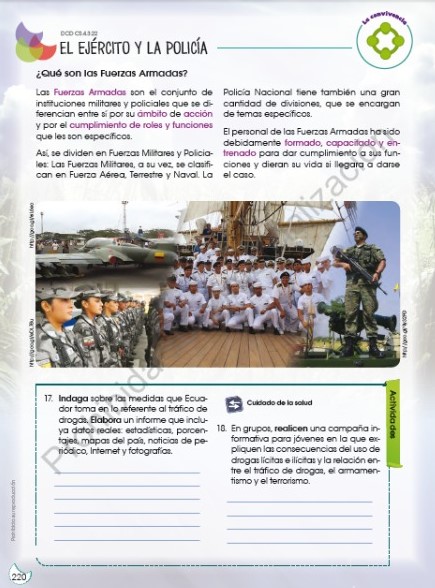 - Lea y analice la información del texto de EESS, sobre la FUERZA PÚBLICA, páginas de la 220 a la 222.